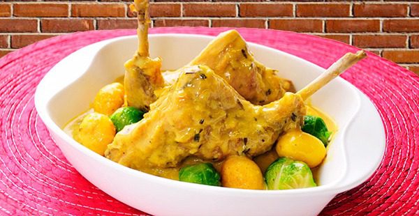 7.Añadir la mostaza, la miel el caldo de pollo y el estragón. Cocinar a fuego medio hasta que la salsa espese, rectificar la cocción del conejo, en caso de que aún se sienta muy duro, incorporar más caldo de pollo o agua y cocinar hasta que esté suave.