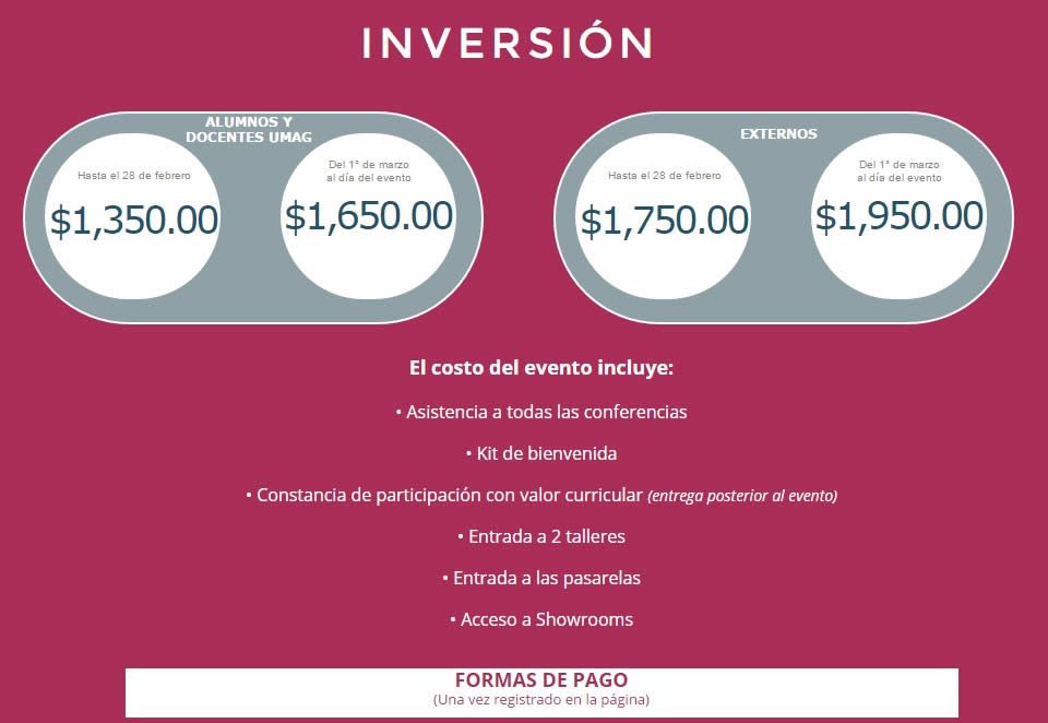 No es tan sólo un evento académico, sino un evento de profesionales nacionales e internacionales, un espacio donde se generarán nuevas ideas y se plasmarán nuevas tendencias en el diseño: interiorismo, moda, imagen, arquitectura y gráfico, por lo cual, la UMAG® y la Ciudad de Puebla, se vuelven sede de este Encuentro en un espacio referente histórico como lo es el centro comercial Paseo San Francisco, donde se desarrollarán actividades como: Conferencias Magistrales, Conferencias Especializadas, Talleres, Showrooms y Pasarelas.