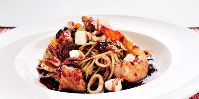 2. Calentar el aceite en una sartén a fuego medio-alto, agregar los mariscos y cocinar rápidamente, sazonar con las especias al gusto e incorporar la salsa de Zarzamora.